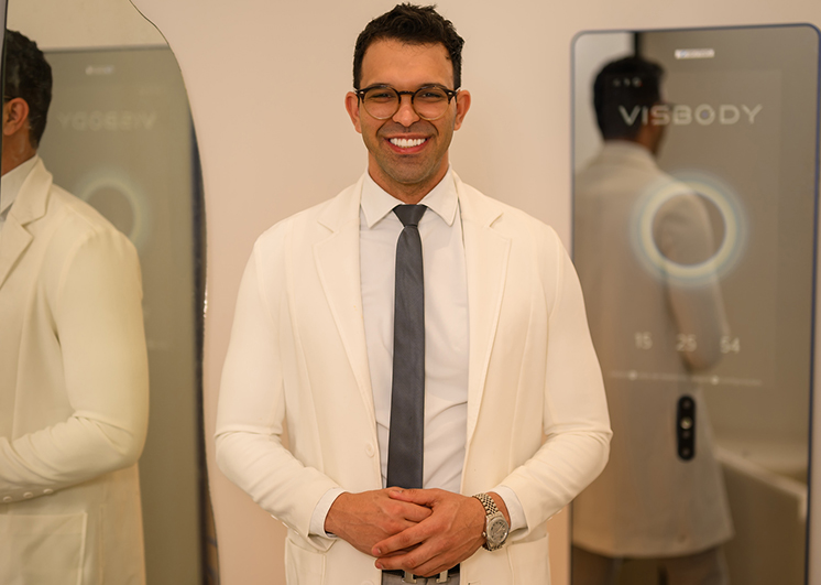Mapeamento tridimensional do corpo com medidas milimétricas, análise de proporções e acompanhamento visual da evolução do tratamento.